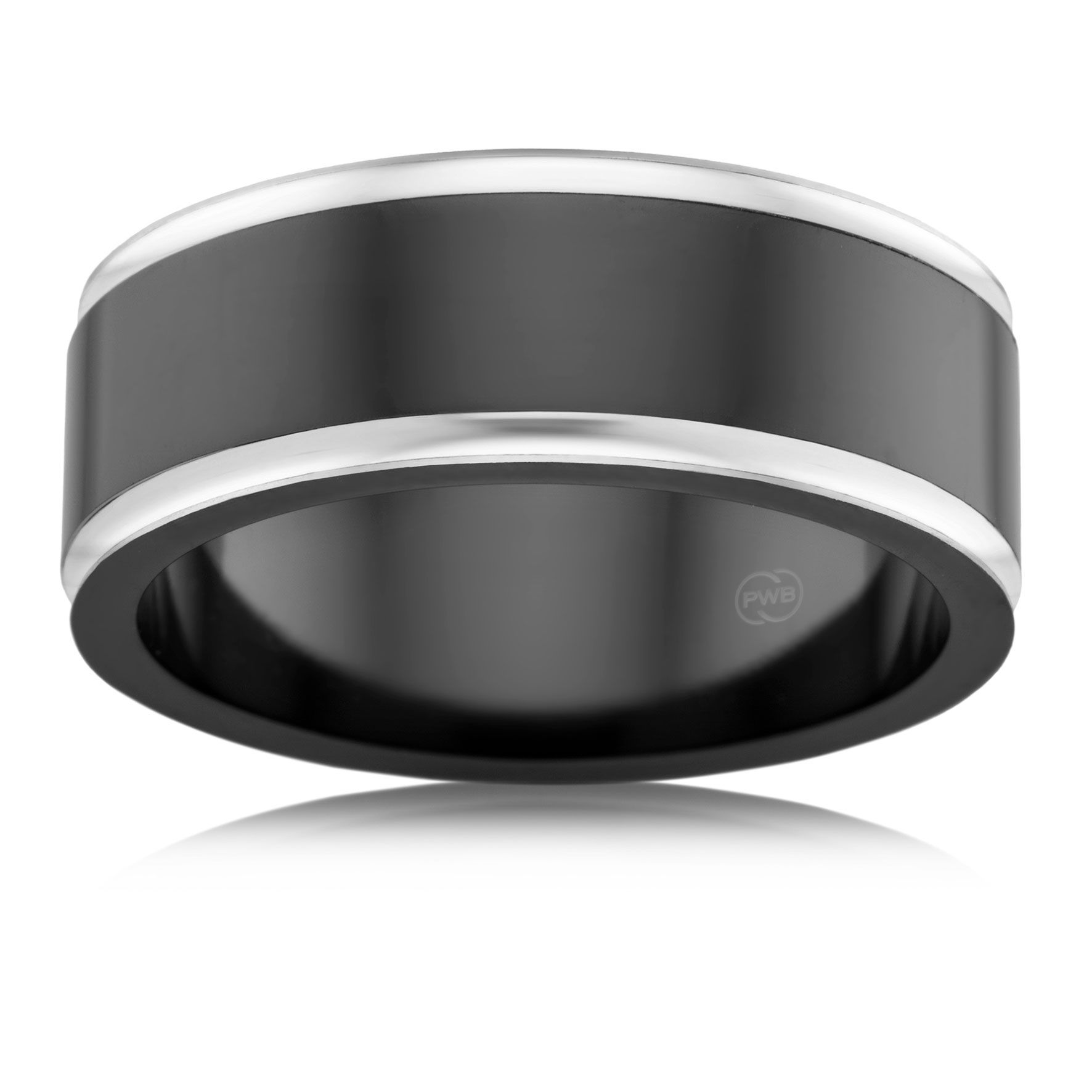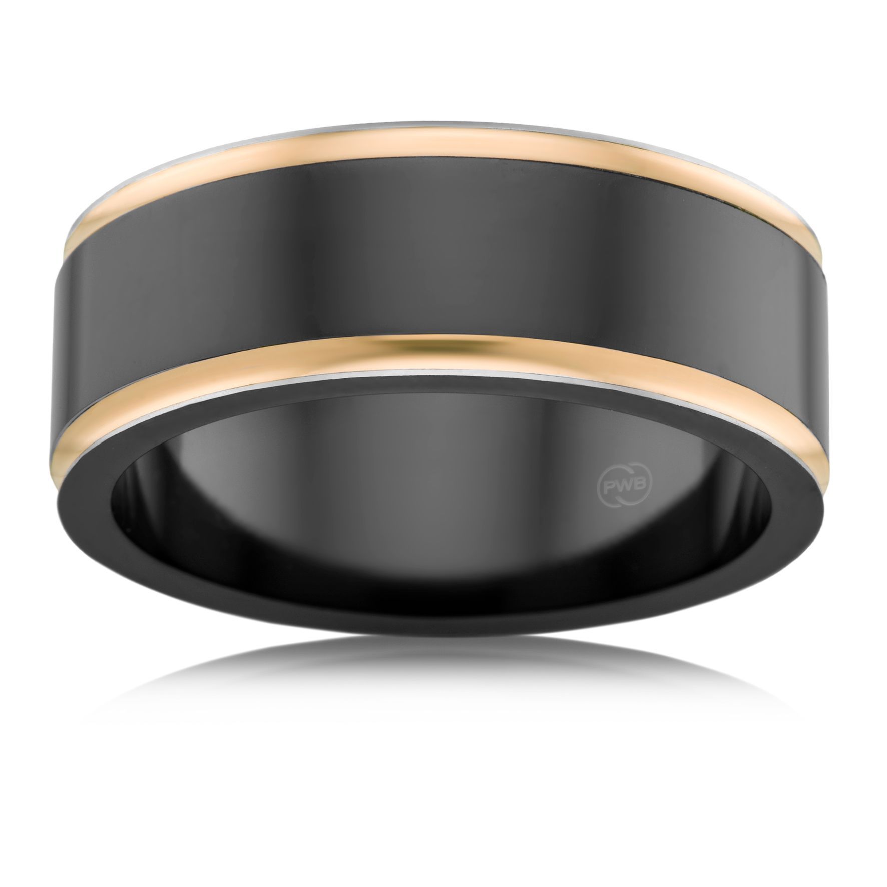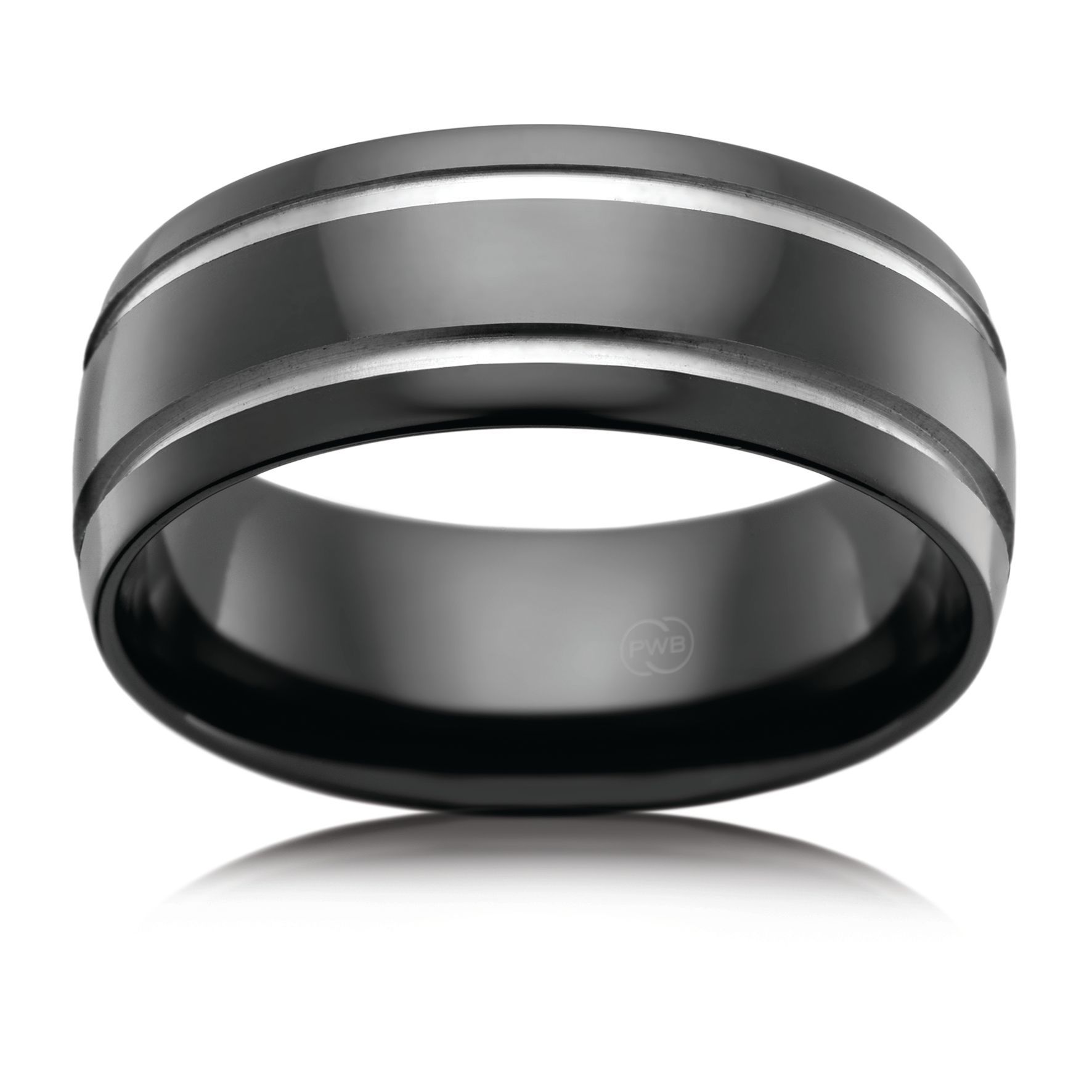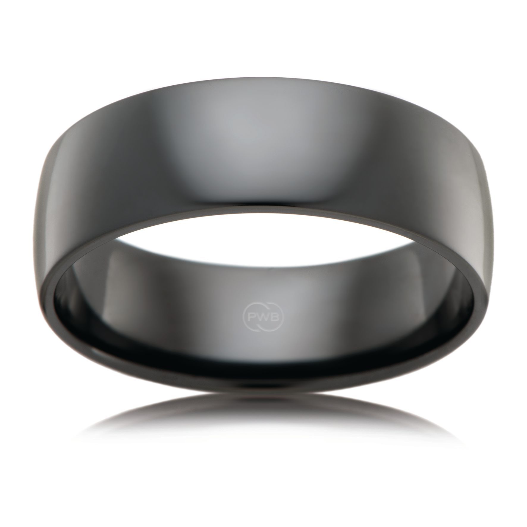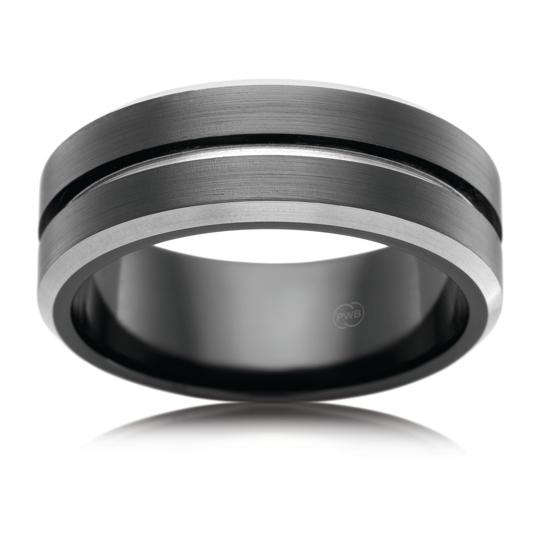 Our small gallery range of Black zirconium & Tantalum range of wedding band designs by PETER W BECK are beautifully crafted and light in weight, (similar in weight to titanium), black zirconium & tantalum are a great wedding band choice for those after a dark or grey colour contrasting with gold or just the black metal by itself.